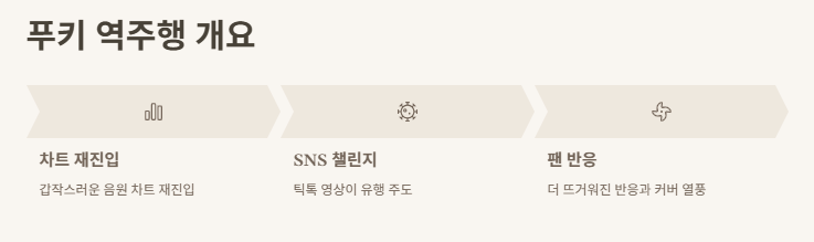 1. 푸키는 어떻게 다시 차트에 올랐을까? SNS 챌린지와 틱톡 영상이 유행을 이끄는 데 큰 역할을 했다. 2. 팬들의 반응은? 처음보다 더 뜨거워진 반응과 각종 커버 영상, 댓글 열풍이 이어지고 있다. 3. 앞으로 피프티피프티의 전망은? 이번 역주행이 향후 활동에 긍정적 영향을 줄지 관심이 모인다.