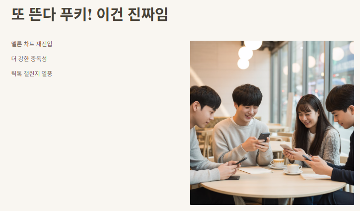 푸키의 역주행이 단순한 해프닝이 아니라, 피프티피프티라는 그룹의 가능성을 보여주는 신호라는 생각이 들어. 사실 요즘은 신곡보다도 ‘숨은 명곡’들이 이렇게 다시 떠오르는 시대잖아. 그런 점에서 이번 푸키 열풍은 진짜 의미 있는 일이야. 친구들이랑 얘기하다 보니까, 다음엔 또 어떤 곡이 역주행할까 기대도 되고, 피프티피프티가 새 앨범 낸다면 바로 들어봐야겠다는 생각도 들어. 이제는 그냥 ‘한때 유행했던 곡’이 아니라, 계속 듣고 싶은 명곡이 된 것 같아. 다들 요즘 무슨 노래 듣냐고 하면 나 진짜 자신 있게 말할 수 있어. “나는 요즘 푸키 듣는다”고.