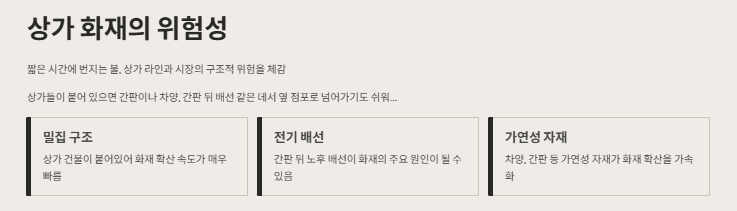 짧은 시간에 번지는 불, 상가 라인과 시장의 구조적 위험을 체감