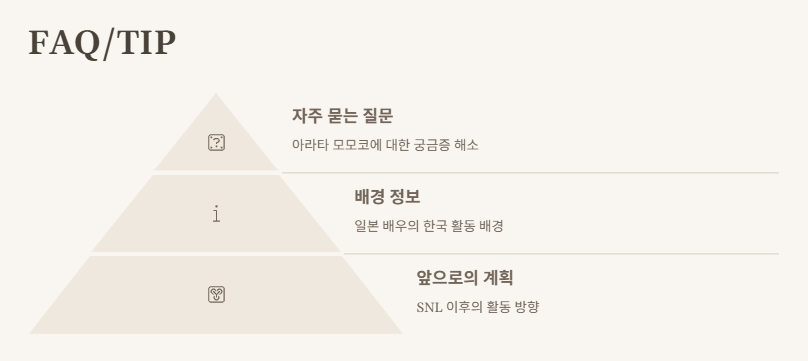 솔직히 말해서 처음에 ‘아라타 모모코’라는 이름 듣고 “누구지?” 했거든? 근데 《SNL 코리아 시즌7》 보다가 진짜 빵 터졌어. 일본 배우인데 한국말 너무 자연스럽고 개그 감각도 찰떡이라 놀랐지 뭐야! 외국인 최초로 SNL 크루에 합류했다는 것도 대박인데, 알고 보니까 경력도 꽤 탄탄하더라.