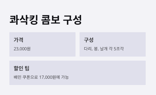 - 콰삭킹 콤보 구성: 가격대비 만족도는?
