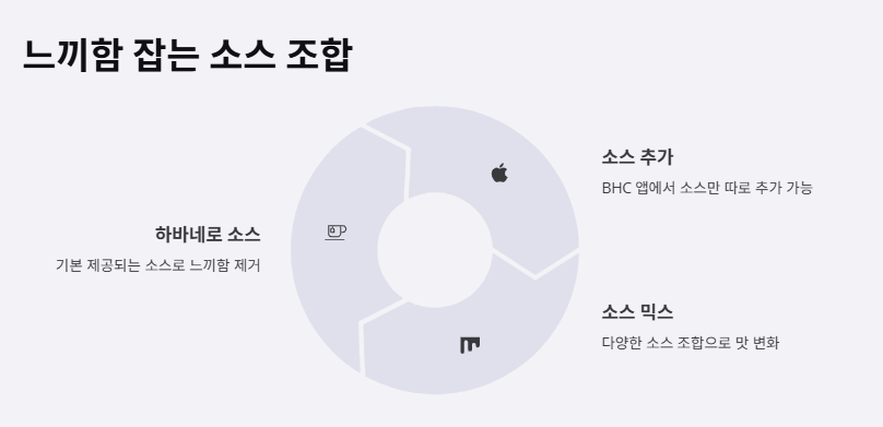 처음에 하바네로라는 말 듣고 매울 줄 알았거든요? 근데 콰삭킹 콤보에 들어 있는 소스는 생각보다 순해요. 오히려 느끼함을 딱 잡아주는 단짠단짠 스타일이에요. bhc 콰삭킹 소스는 평범한 빨간 양념소스랑은 다르고, 약간 이국적인 느낌도 있어서 색다른 재미가 있더라고요.