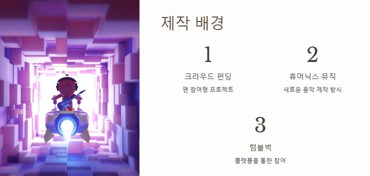 A: 팬 참여형 크라우드 펀딩 앨범 프로젝트 ‘휴머닉스 뮤직’의 일환으로 제작되었습니다.