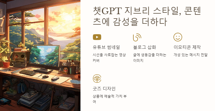 챗GPT 지브리 스타일은 콘텐츠 제작자들에게 새로운 도구입니다. 유튜브 썸네일, 블로그 삽화, 이모티콘 제작, 굿즈 디자인 등 다양한 콘텐츠에 활용되며, 창작자들에게 효율성과 감성을 동시에 제공합니다.