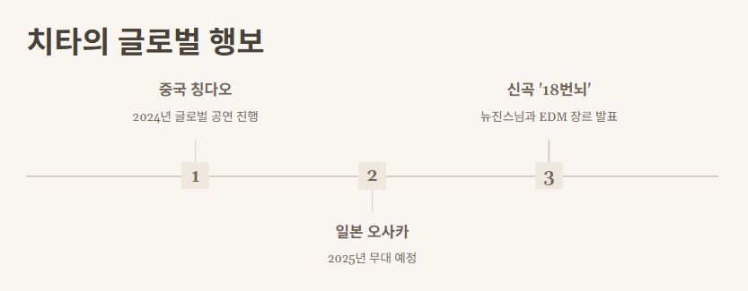 2024년 칭다오, 2025년 오사카까지 치타는 다양한 무대를 통해 글로벌 팬들과 소통 중이다.