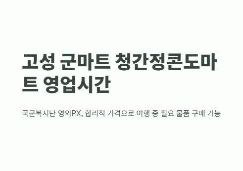 강원 고성군에 위치한 청간정콘도마트는 국군복지단에서 운영하는 영외PX로, 주말 여행이나 숙박 중 필요한 물품을 합리적인 가격에 구매할 수 있는 곳입니다. 이 글에서는 군마트 청간정콘도마트의 정확한 영업시간과 실제 방문 경험, 주차 정보, 추천 상품 등을 자세히 소개합니다.