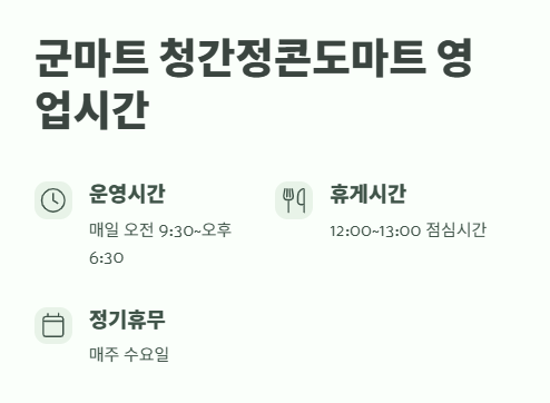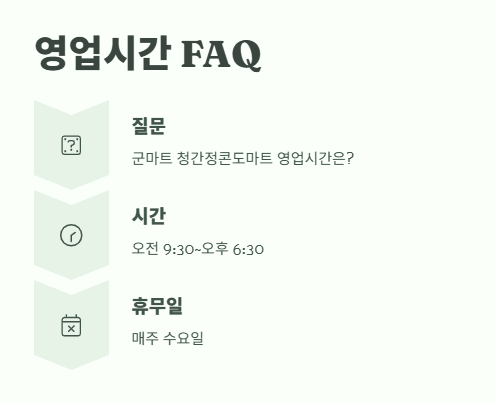 Q1. 군마트 청간정콘도마트 영업시간은 어떻게 되나요?