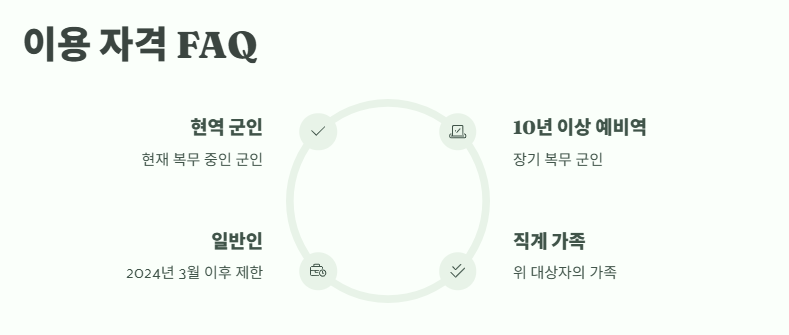 2024년 3월 이후부터는 대상자가 아니면 출입이 제한됩니다. 군인 또는 10년 이상 복무한 예비역과 그 가족만 입장 가능합니다.