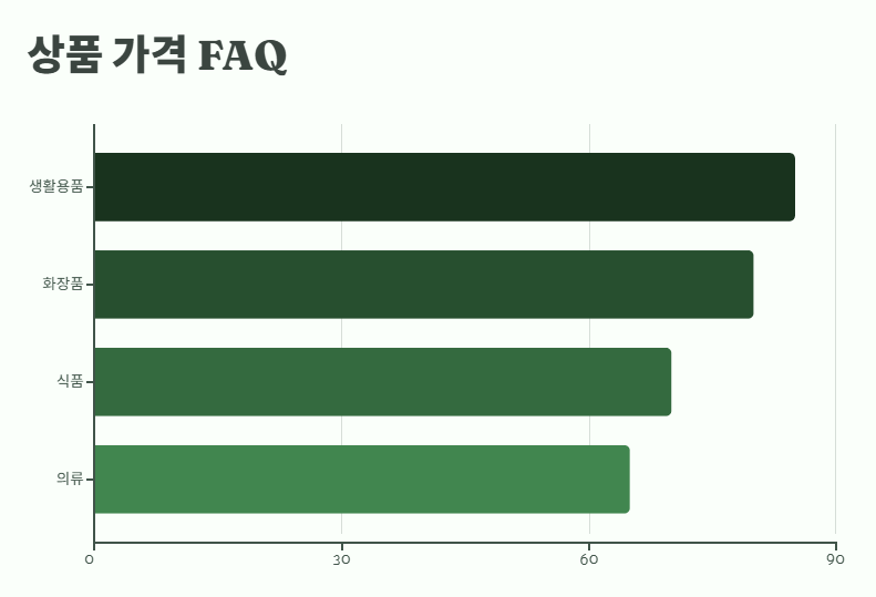 전반적으로 시중가보다 저렴하며, 생활용품과 화장품의 가격 경쟁력이 높습니다.