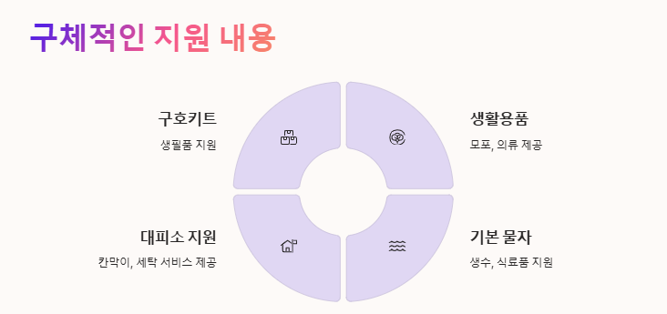 피해 지역 주민들을 위한 긴급 생계 지원, 구호물품 제공, 임시 대피소 운영 등에 사용됩니다.