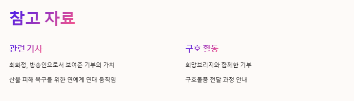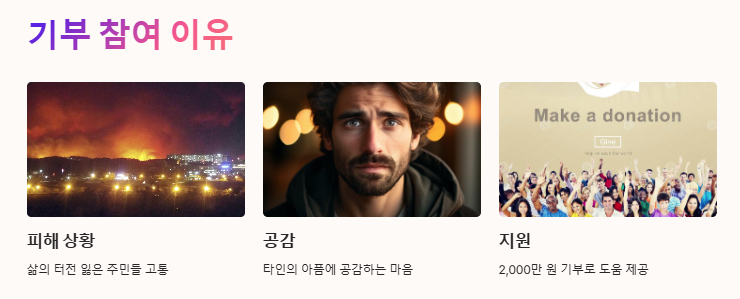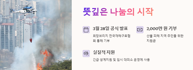 삶의 터전을 잃은 주민들의 고통에 공감하며, 조금이라도 도움이 되고자 2,000만 원을 기부했습니다.