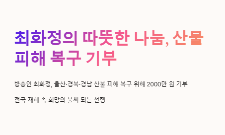 진심 어린 선행, 최화정의 산불 복구 기부 소식