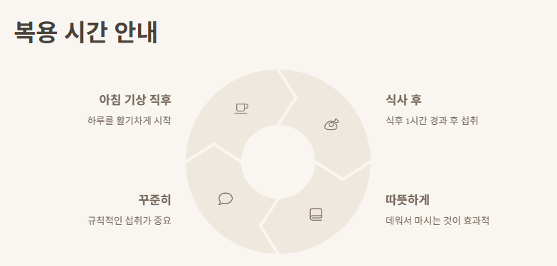 공복보다는 식후 1시간쯤, 혹은 아침 기상 직후 따뜻하게 마시는 게 좋습니다.