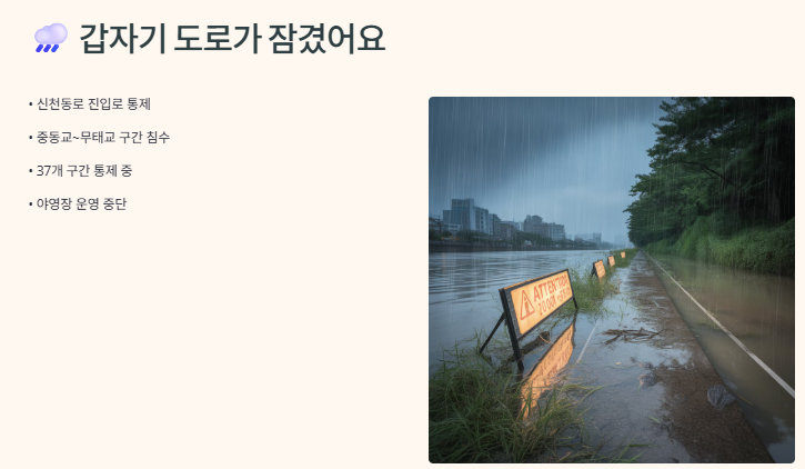 🌧️ 갑자기 도로가 잠겼어요… 이게 무슨 일이람?