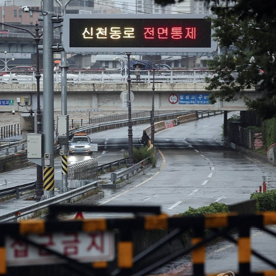 신천동로는 하천 옆 저지대 도로라 집중호우 시 물이 빠르게 유입돼요.
