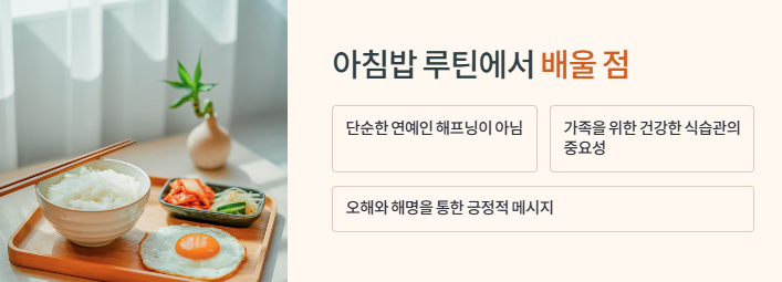 A. 아침밥은 화려하지 않아도 되고, 가족의 건강과 배려가 진짜 중요하다는 메시지를 얻을 수 있습니다.