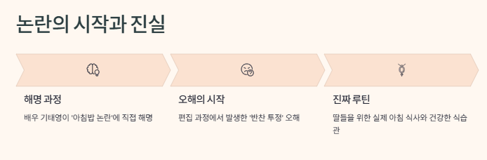 이번에 공개된 유튜브 영상에서 기태영은 직접 나와서 “아내에게 아침밥 요구한 적 없다”고 딱 잘라 말했어. 나는 이 부분에서 진심이 느껴졌어. 사실 아침밥 논란이라는 게 원래 별 것 아닌 문제였는데, 편집된 장면 때문에 마치 남편이 아내에게 요구하는 모습으로 비춰진 거잖아. 이건 솔직히 누구라도 억울할 만하지. 그래서 이번 해명 영상은 팬들에게 큰 반향을 불러일으킨 것 같아.