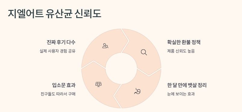 맞아. 요즘 유산균 제품 광고 엄청 많잖아? 근데 지엘어트는 진짜 후기가 많고, 환불 정책도 확실해서 신뢰가 갔어.