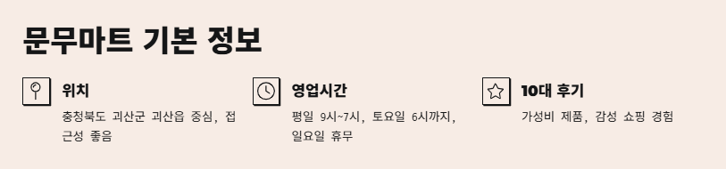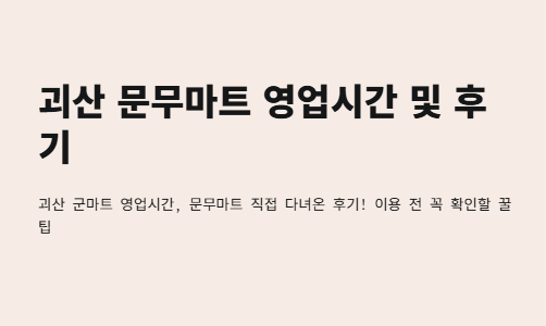"괴산 문무마트 영업시간 언제예요?" 저도 네이버에서 열심히 찾아봤지만, 정확히 정리된 정보가 없더라고요. 그래서 제가 확인한 내용을 정리해드릴게요!