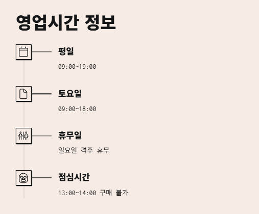 - 점심시간: 13:00~14:00 (이때는 구매 불가!)