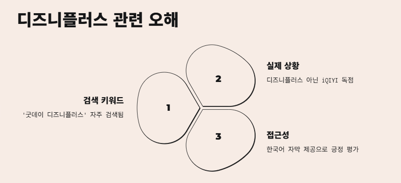 ‘굿데이 디즈니플러스’는 종종 검색되는 키워드지만, 해당 프로그램은 디즈니플러스가 아닌 iQIYI에서 독점 스트리밍되었다.