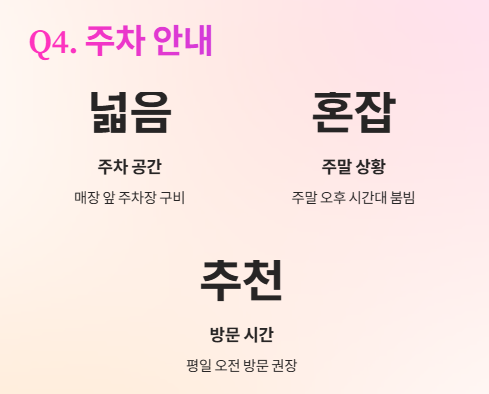 주차 공간은 있지만, 주말에는 붐비므로 평일 오전 방문을 추천드립니다.