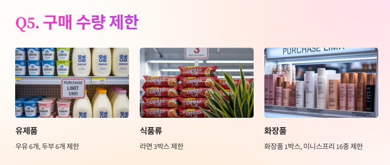 Q5. 구매 수량 제한 품목은 어떤 게 있나요?