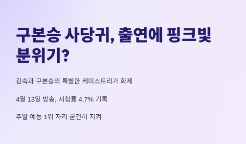 구본승과 김숙의 핑크빛 케미 요약