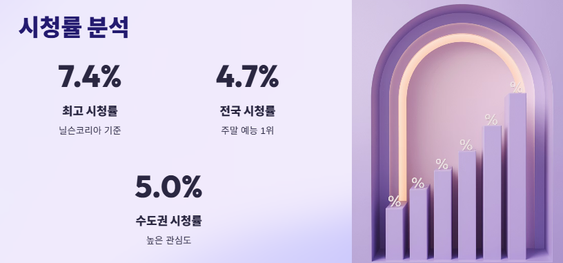 닐슨코리아 기준, 이날 방송은 최고 시청률 7.4%를 기록하며 예능 시간대 1위를 차지했다. 이는 구본승 사당귀 출연 효과에 김숙과의 시너지, 그리고 프로그램 전반의 기획력 등이 어우러진 결과로 해석된다.
