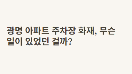 어제 저녁, 경기도 광명시 소하동에 있는 한 아파트 주차장에서 불이 나면서 정말 많은 사람이 다쳤대. 7월 17일 밤 9시쯤, 1층 주차장 천장에서 갑자기 불이 났는데, 몇몇 주민들은 “가스 폭발처럼 소리가 쾅쾅 났다”고 했어. 이게 그냥 불이 아니라 차량 폭발로 이어지면서 상황이 더 심각해졌다고 하더라.