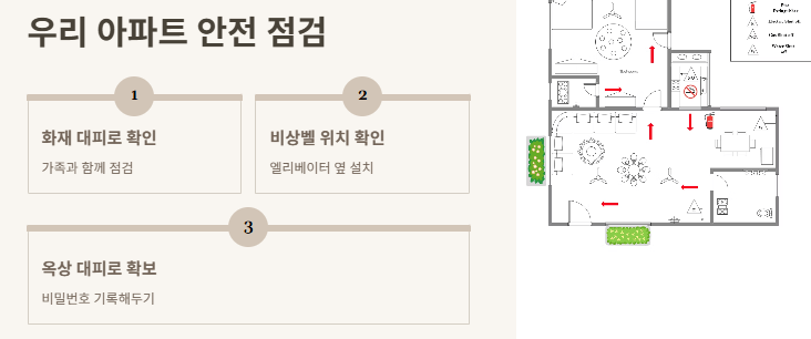 - 연기 나는 방향과 반대쪽으로 최대한 빠르게 이동하기