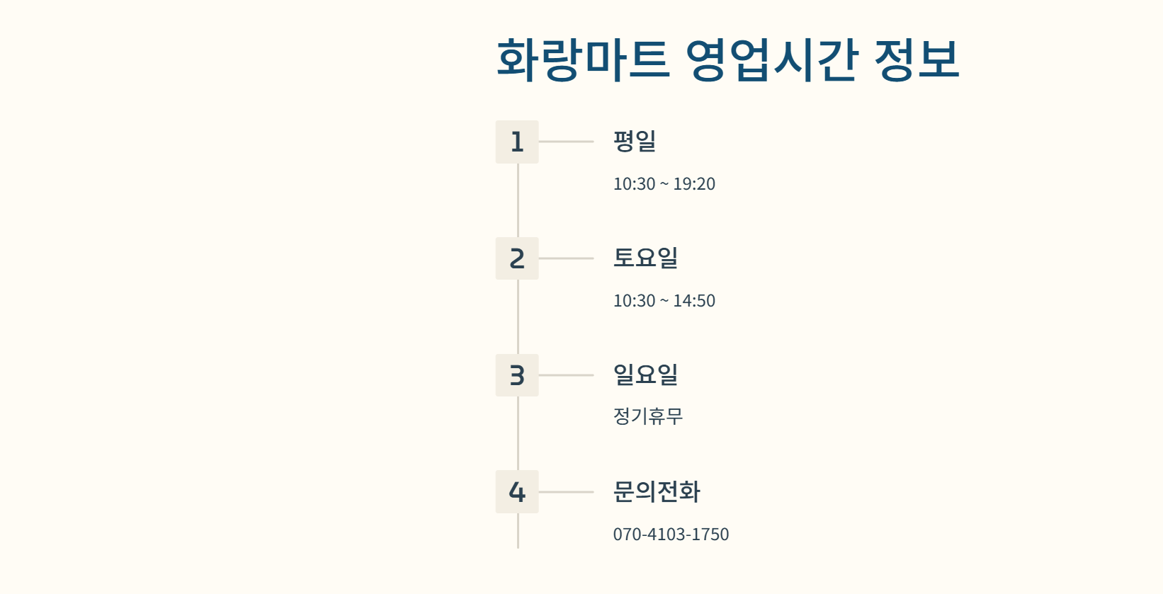 이렇게 기억하면 딱이야. 그리고 공휴일에는 특별휴무 있을 수 있으니까 가기 전엔 전화로 한번 꼭 확인해보는 거 추천해! 전화번호는 070-4103-1750이야.
