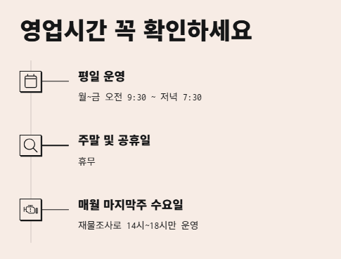 매월 마지막주 수요일은 재물조사 때문에 14시~18시만 운영하니까