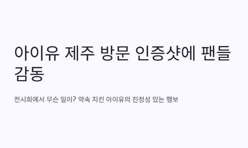 안녕 블로그 친구들! 오늘은 진짜 뜨거운 이슈 중 하나! 바로 아이유 제주 방문 이야기야💜 나는 진짜 우연히 이 소식 보고 너무 감동받아서 바로 포스팅 안 하면 안 될 것 같았어. 왜냐면 내가 얼마 전에 제주도 놀러 갔을 때 그 전시회 근처 지나갔거든!? 그땐 몰랐는데… 세상에 아이유도 거기 다녀갔대! 내 심장 와르르르💥