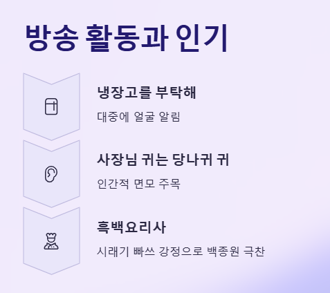 특히 《흑백요리사》에서는 시래기로 만든 빠쓰 강정을 선보여 백종원의 극찬을 받았고, TOP8까지 진출하며 실력을 입증했다. 이때 그녀의 명언, “쉽지 않네…”는 커뮤니티에서 밈처럼 회자되기도 했다.