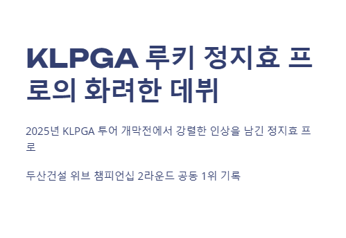 2025년 한국여자프로골프(KLPGA) 투어 개막전에서 강렬한 인상을 남긴 선수가 있습니다. 바로 ‘루키’ 정지효 프로입니다. ‘KLPGA 루키 정지효 프로’라는 문장은 이제 골프 팬들에게 낯설지 않은 이름이 되었고, 그녀의 데뷔 무대는 화려했습니다. 정지효는 두산건설 위브 챔피언십 2라운드에서 4언더파를 기록하며 이예원, 홍정민과 함께 공동 1위에 오르며 우승 경쟁에 불을 지폈습니다.