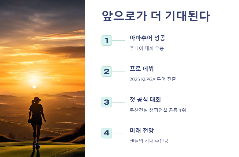 2025 시즌 KLPGA 투어는 정지효라는 이름을 중심으로 더욱 흥미로워지고 있습니다. 그녀는 아직 우승은 없지만, 이번 두산건설 챔피언십에서 보여준 활약은 분명히 ‘가능성’ 이상의 것이었습니다. “KLPGA 루키 정지효 프로”라는 이름은 이제 팬들에게 희망의 상징이자 기대의 주인공으로 자리잡고 있습니다.