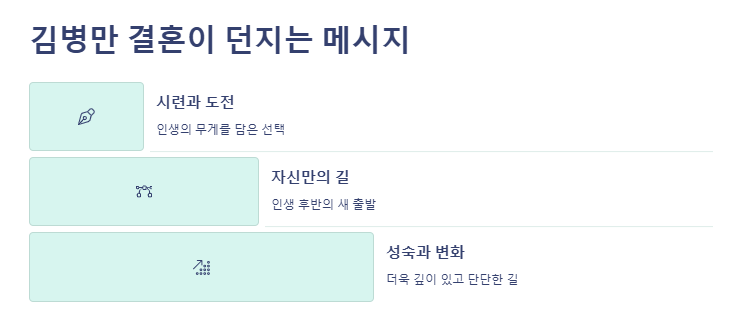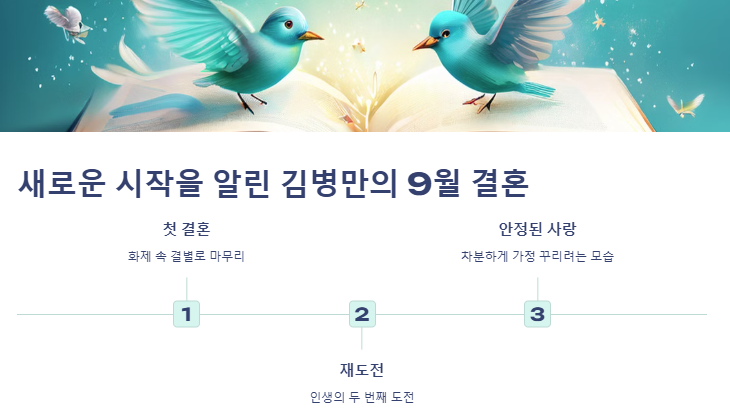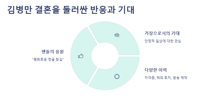 이번 결혼은 김병만에게 있어 인생의 두 번째 도전이기도 하다. 과거 첫 결혼은 많은 화제를 불러일으켰지만, 결국 긴 별거 끝에 결별로 마무리되었다. 그러나 이번에는 더 차분하고 안정된 사랑 속에서 조용히 가정을 꾸리려는 모습이 엿보인다.