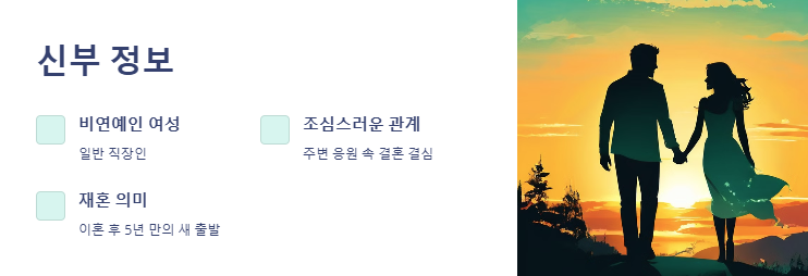 김병만의 결혼 상대는 비연예인 여성으로, 직장인이라는 사실 외에는 공개된 바 없다. 관계자에 따르면 김병만은 이 여성과 조심스럽게 사랑을 키워왔으며, 주변의 응원 속에서 결혼을 결심하게 되었다고 전해진다. 이로써 김병만은 지난 이혼 이후 5년 만에 재혼의 길에 들어서게 됐다.