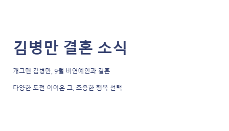 한 방송 관계자는 “김병만은 평소에도 조용하고 진중한 성격으로 알려져 있다”며 “이번 결혼도 그다운 방식으로 준비 중인 것으로 보인다”고 전했다.