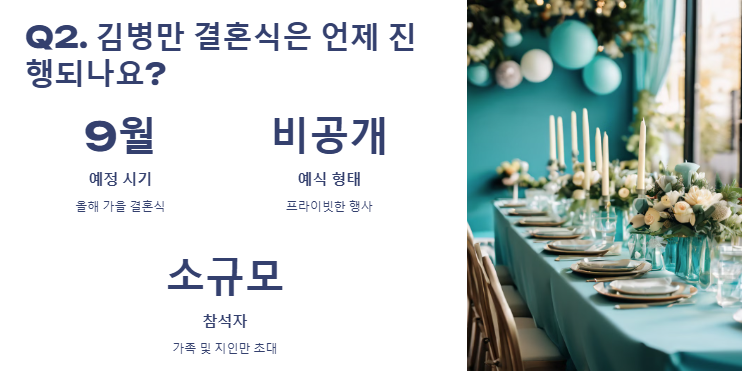 오는 9월로 예정되어 있으며, 가족 및 지인만 초대한 비공개 예식입니다.
