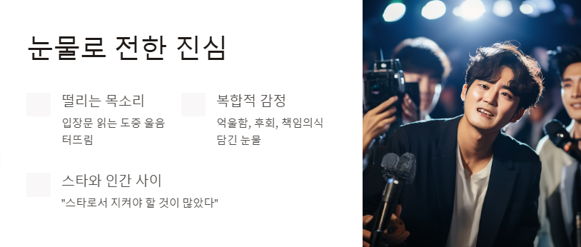 김수현의 기자회견은 그 자체로 큰 의미를 지닌다. 그는 카메라 앞에서 떨리는 목소리로 입장을 발표했고, 준비한 입장문을 읽는 도중 울음을 터뜨렸다. 김수현 기자회견 눈물은 단순한 감정 표현이 아닌 억울함과 후회, 책임의식을 모두 담고 있었다. 그는 “저는 스타 김수현으로서 지켜야 할 것이 많았고, 그로 인해 인간 김수현으로서의 진심을 드러내지 못했다”고 털어놓았다.