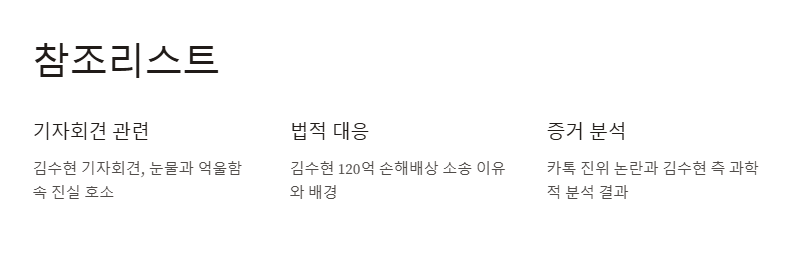 특히 고인의 유족 측이 제기한 '김수현이 고인을 죽음으로 몰았다'는 주장에 대해 그는 단호하게 “받아들일 수 없다”고 말했다. 김수현 기자회견 논란의 중심이기도 했던 이 주장은 김수현에게는 도저히 묵과할 수 없는 모욕으로 받아들여졌던 듯하다.