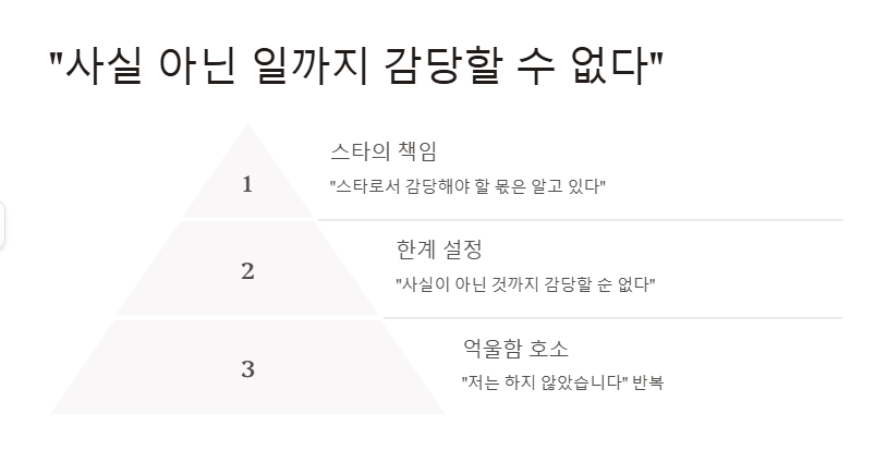 “저는 스타로서 감당해야 할 몫은 알고 있습니다. 하지만 사실이 아닌 것까지 감당할 순 없습니다.” 김수현 기자회견에서 이 말은 반복되며, 현재 그의 내면을 단적으로 보여준다. 김수현 기자회견 해명은 일관된 논리와 근거로 구성되어 있었으며, 여러 번 “저는 하지 않았습니다”라고 말하며 억울함을 호소했다.