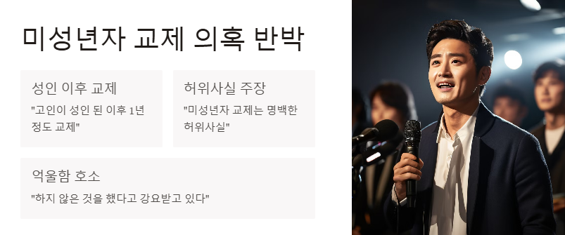 미성년자 교제 의혹 반박, 카카오톡 조작 의혹 제기, 7억 채무 강제 아님 주장 등이 포함됩니다.