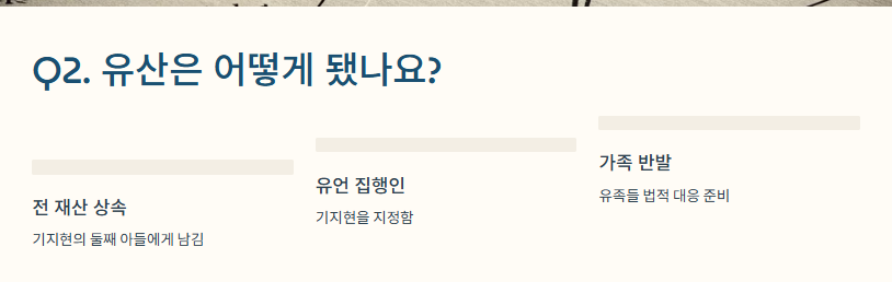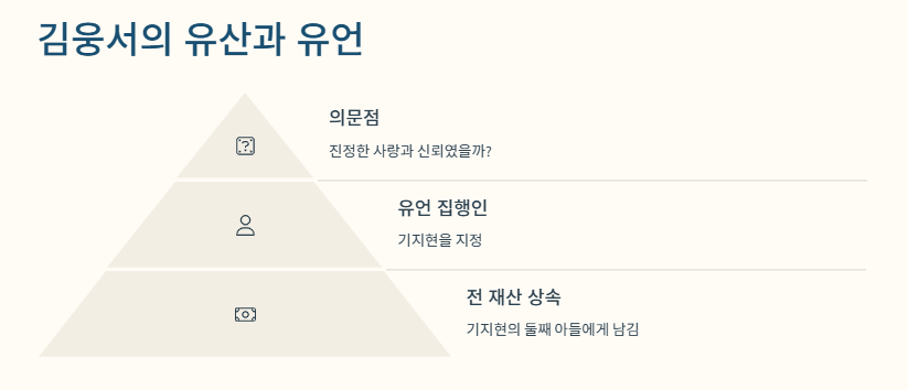 더 충격적인 건 김웅서가 전 재산을 기지현의 둘째 아들에게 남겼다는 사실이에요.