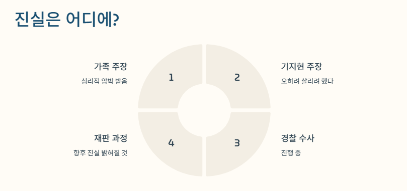 김웅서 기지현 사건은 여기서 더 복잡해졌어요. 김웅서가 가족을 싫어했다는 기지현의 주장, 그리고 가족들의 반박이 서로 엇갈렸거든요.