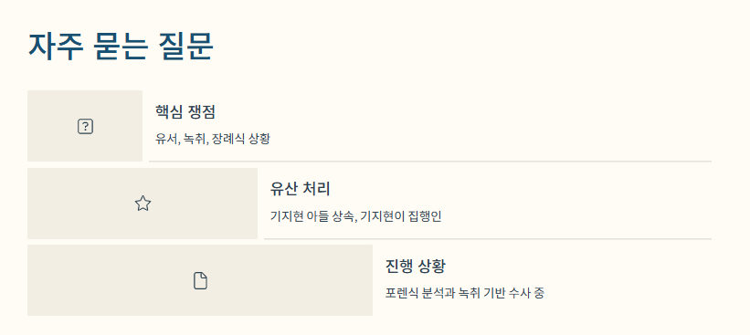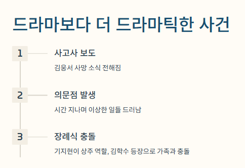 김웅서의 갑작스러운 죽음, 기지현과 얽힌 관계, 그 후에 벌어진 이상한 상황들을 정리해요. - 김웅서 유서 및 장례식 논란