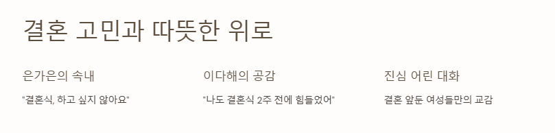 결혼을 준비하며 겪는 불안, 서로의 이야기로 녹여내다