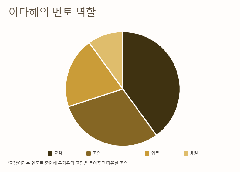 이다해는 ‘교감’이라는 멘토로 출연해 은가은의 고민을 들어주고 따뜻한 조언을 해주었습니다.